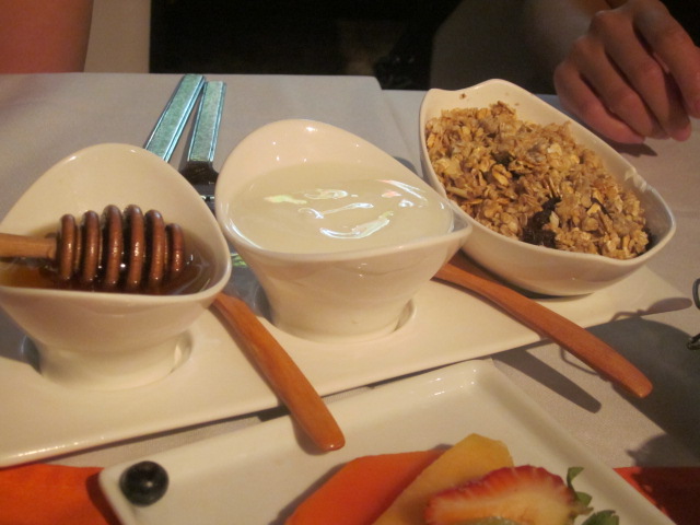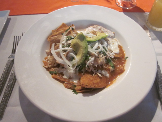 I woke up this morning at 9:30 thinking, surely the girls have been up for hours and already got coffee and beach time. Being notoriously the last to wake up, I was shocked to find I was the second person awake! Should I go back to sleep?! Nope, time to see what Playa has to offer…the other girls got up shortly thereafter, so we popped downstairs to Imprevist, one of the restaurants associated with our condo group, as we had vouchers for a free breakfast. Breakfast was quite a spread of goodies, with orange juice, tea, homemade bread basket, tropical fruits, and an arrangement of granola/yogurt/honey. And that was all the shared goodies before our entrees! I barely had room by the time my chilaquiles hit the table but boy was it good.