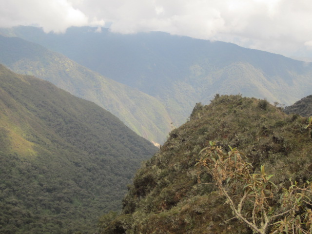 Francisco gave us two options for how to finish up the day – the first was about 10 minutes longer and though it had a good number of steps, was a gentler decline and had nice scenery. Option two was a bit faster, with multiple switchbacks that would result in steeper steps. Since we’d been walking for a good 8 hours already, what was the difference of another 10 minutes for better scenery. Boy were we in for a treat…when we reached the opening through the forest, we were greeted with ancient ruins of agricultural terraces built right into the mountain, with a view way down of our campsite next to the Urubamba River and even glimpses of civilization – the train to Aguas Calientes! We saw a few llamas grazing here and had the opportunity to walk through these terraces, descend down “Inca stairs,” and take a few silly pictures. Of over 400 important cities in Inca history, it’s unbelievable to hear that only half of these have been discovered…