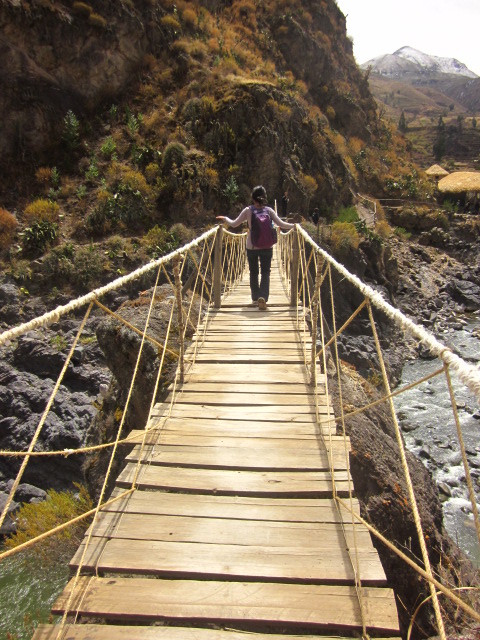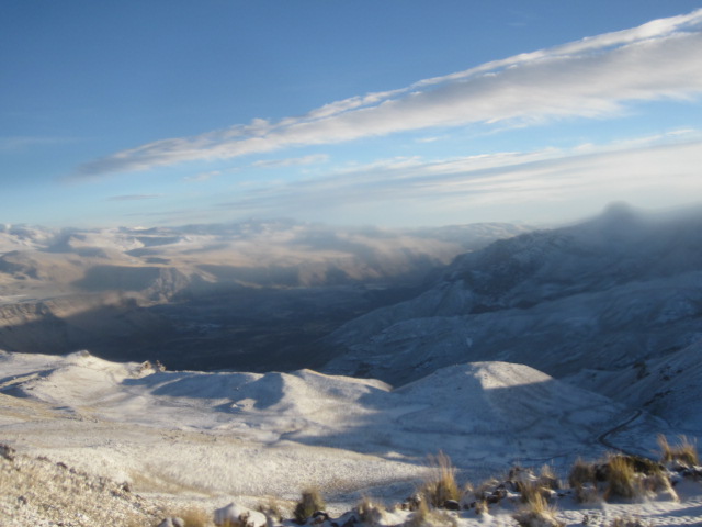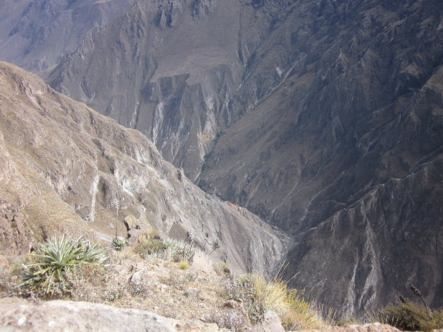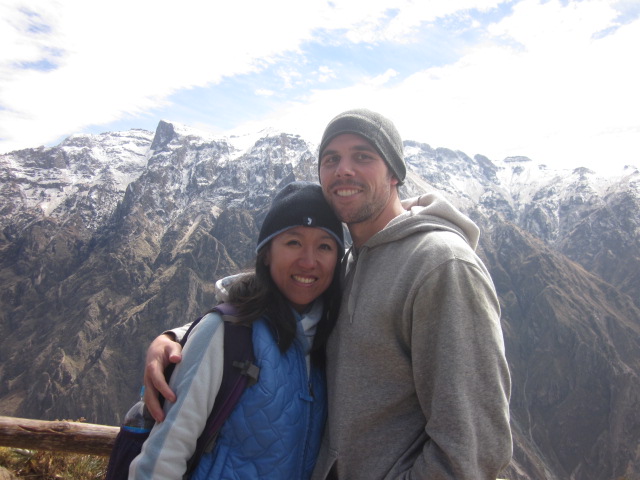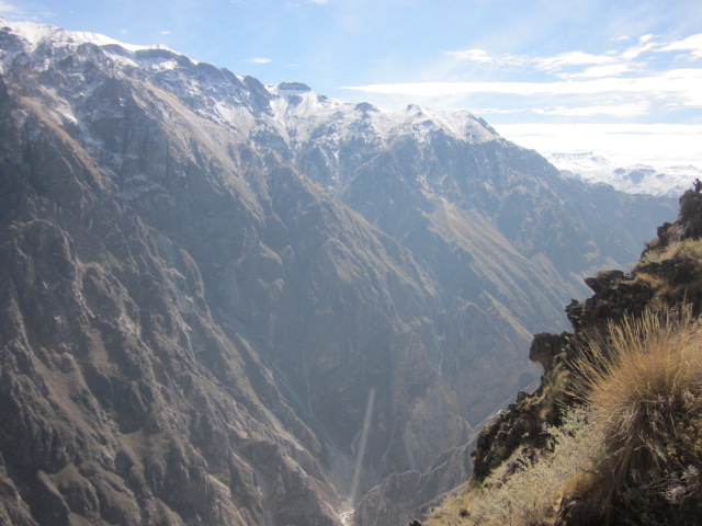 It just seems as though our mornings keep getting earlier and earlier. In order to jam in all the sights of the Colca Canyon in one day’s time, we had to leave Arequipa in the middle of the night. Our bus picked us up at 3:30am, and along with about 18 others, we embarked on the 3 hour drive to the beginning of the canyon. As we were all passed out on the entire ride up, I was surprised to wake up to snow-covered peaks upon our arrival. In the mere 3 hours we’d been driving, we had already gone to 4800m/15800ft in altitude. Here we were at the highest point in the canyon, with temperatures around the 20’s, surrounded by volcanoes, in the area appropriately named “Mirador de los Volcanes.” Since we were all half asleep and it was freezing, we lasted 5 minutes outside and then promptly resorted back into the bus for warmth and sleep.