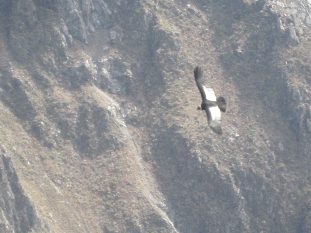 By 9:15am, we’d reached the main stop on our tour, Cruz del Condor (Condor Cross), where we would get an up close glimpse at the indigenous Andean Condor. With a wingspan of 10 feet, these condors were known to utilize heat thermals found in this particular area of the valley to glide up through the air without having to flap their wings. For some reason, the best time to catch this activity was from 9-10am, so we got there just in time for the show. We must’ve seen at least 15 of these guys soaring gracefully through the air here in one of the deeper points in the canyon.