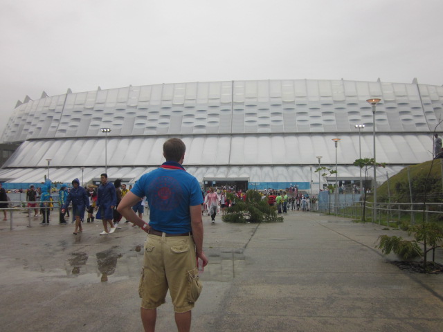 The subway was a long and ridiculous endeavor, as we needed to take one line into downtown Recife before we could transfer to go back out towards the stadium. But despite all the travel delays, we actually got off at our stop right as the game kicked off. But we weren’t there yet. We could see the stadium but it was way out, on top of a hill. We had to take a shuttle several miles, go through security, then walk another half mile to get to the stadium. By the time we actually got inside and to our seats, it was the 35th minute of the first half.