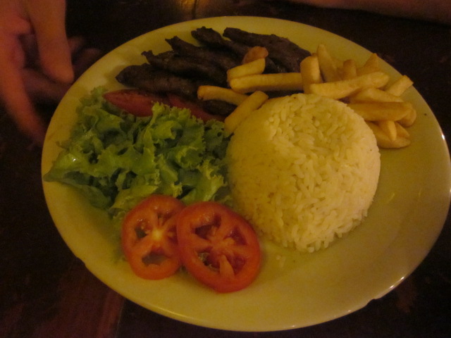 Miraculously, 6 hours after the game’s final whistle, we finally made it back to our hotel in one piece. Ok, time to (finally) relax and actually explore our surroundings! We had dinner at a churrascaria called Porto Gallo – actually our first meal at a normal functional restaurant – and enjoyed some live music which was a nice memory that I had of PdG in general. After dinner, we realized that we were just a block away from the beach this whole time – which actually had a lively but chill night scene, with several outdoor bars. We got a much deserved caipirinha at a bar called Cafe do Brasil and enjoyed it while sitting on the beach watching kids play soccer under the dim lights, and counted our lucky stars that we made it through another crazy day.