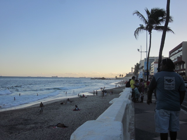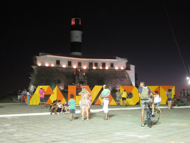 By the time we arrived in Salvador and checked into our hotel, it was already 4:30pm so we decided to just wander to get our bearings straight. The neighborhood we stayed in, Barra, was surrounded by beaches on both sides and despite Salvador’s reputation for being rather dangerous, was known to be one of the safer places to stay. Unlike the last place we stayed, Salvador is a huge city and even the individual neighborhoods were difficult to navigate within themselves. We walked along the beach to catch the sunset, but got distracted by an acai shop along the way – first one we’d seen so far! – that had a TV outside. Naturally, it made the best sense to spend our waning minutes of sunlight sitting on the beach, drinking yummy acai drinks, watching the Germany-Algeria knockout game. After walking around a bit, we soon realized that we were situated right in the middle of the FIFA Fan Zone, where there was a public game viewing area with beverage carts selling beers and caipirinhas everywhere. This was also a popular area for restaurants, which all had TV’s set up outside with crowds gathering. The Germany-Algeria game went into OT, so we actually got to watch the rest of the game outside of a restaurant with super cheap drinks from the street.