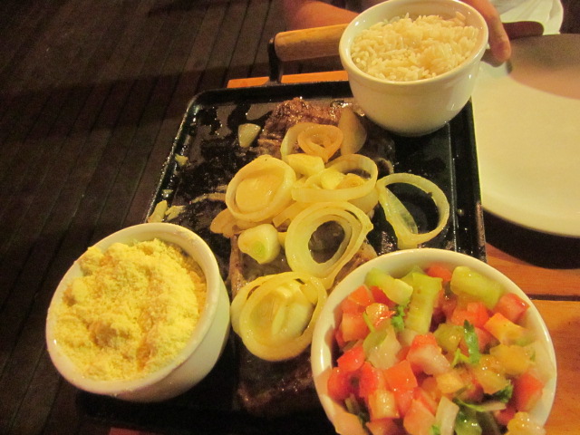 Once it got late, the streets were pretty dead and since we didn’t know the area well, we decided to keep it local. Of all the places we visited in Brazil, Salvador was the only one where we actually stayed in the host city (and not in a jungle lodge or remote beach) and as a result the only place where we felt slightly unsafe. Although there weren’t any specific incidents causing us to feel that way (thankfully), the area just had this weird deserted vibe that made us feel uneasy walking around at night. We actually went back to Do Faro, the restaurant where we watched the game from earlier, as it came with good reviews. Everything else that was in a different neighborhood would’ve required a 20 minute taxi ride, and we weren’t about to try to figure that out in a new neighborhood late at night. The food was quite delicious though pretty overpriced – around $25 a dish – but since the portions were huge, we were fine sharing a giant steak on a sizzling grill and another order of grilled Brazilian cheese.