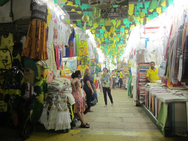 Feeling adventurous, we walked around in search of the “ônibus,” or public bus, that would take us across town to the Pelourinho district. After many failed attempts to hop onto the wrong bus (using clear signs was not a priority in Brazil), we finally found the right one that took us right outside of Pelourinho. Off the bat, the area was unique in that there was an upper level and lower level of the town that was connected by a giant elevator. Lower Pelourinho (Cidade Baixa) consisted of the port for the Bay of All Saints, which provided connections to neighboring ports and islands. It was also here where we could walk through the very busy Mercado Modelo, an indoor artisan market that housed stall after stall of every type of homemade good imaginable – although admittedly catered more towards tourists.