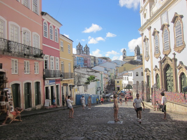 Upper Pelourinho (Cidade Alta) was the more historic heart of the city, with pastel buildings and the greatest number of baroque churches per capita in Brazil. Translated into “whipping post” in Portuguese, the Pelourinho was known for being the center of town where slaves had traditionally been beaten. Despite its violent past, it was here where we could see the proud Afro-Brazilian culture of Bahia really come to life. While I didn’t exactly know what “Afro-Brazilian culture” even was prior to our trip (or the fact that many Africans even lived in Brazil), I soon learned that the Africans that initially came by way of slave trade contributed to the development of capoeira (a dance-like martial arts) and a unique type of steel drum music. Both were in full display during our trip to the Pelourinho in a number of public areas. It wasn’t just the culture that was fascinating in this area; the architecture and narrow cobblestone streets that one could easily get lost among just added to the overall charm.