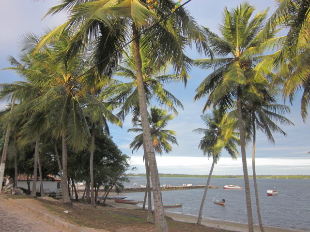 Once we were past the touristy beach spots near Salvador, we began to coast and the bus emptied out, so we finally got to sit next to an open window so we didn’t overheat. Even though our stop, Indiaroba, was only 200 miles north of Salvador, it took us a nice long 4.5 hours to finally arrive. And we weren’t at our final destination yet. From there, we took a 20 minute taxi to Pontal, a small port across the river from Mangue Seco. It was a bit of a funny situation – the bus driver spoke zero English and barked a number of instructions to us and another couple, who turned out to be from Switzerland. The man understood Portuguese and spoke French, which he used to relay to his French-speaking girlfriend. Meanwhile, I was getting a much better idea of what was going on by speaking to her in French, which I’d then translate into English for Doug. It took a while to get any message across the 4 of us, but it was an effective process!