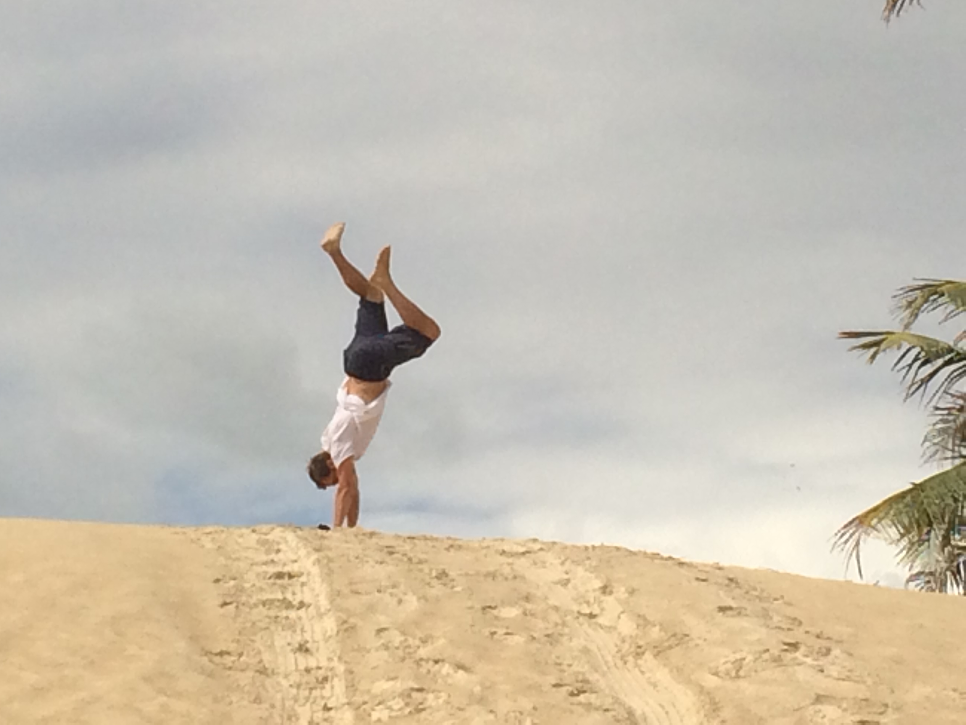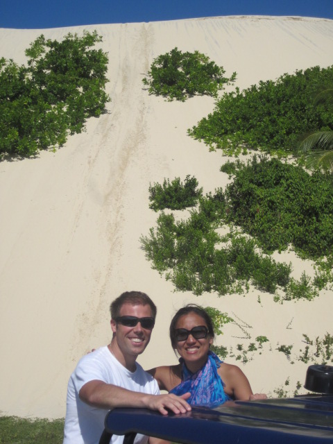 Next up was the highlight of our day and for me, one of the biggest highlights of our entire trip. We had booked a buggy tour through our hotel, who assured us that our driver Eduardo was the best in the business. If there was a better guy, we’d be impressed because Eduardo really made the tour. Without knowing any English, Eduardo had the gift of of slowing down to explain things so well that we didn’t need to fully know Portuguese to understand him (my Duolingo lessons still helped, however). We started our 2 hour tour by driving through the sand dunes to stop at a few viewpoints and actually had the chance to stop and try our hand at sandboarding down one of the dunes. It was here where we learned a little about Mangue Seco’s history and what made the area so unique. Given the way the wind blows, the dunes retreat towards the river by a few meters each year, so that in 300 years they will move completely to the river banks, completely covering the palm trees that line the shores. Eduardo was quite the skilled driver as well, taking us through and down some steep dunes for a fun ride, then through a small nearby village, before winding our way back onto the beach. Approaching the village, we saw many more mangroves (mangues) that gave the town its name, along with piles and piles of coconuts that, in addition to tourism, are the primary cash cow for the small village of 200. In the village, we sat down with some locals for a quick beverage, sampling the juice of mangabas, a local fruit with a sweet pear-like taste.
