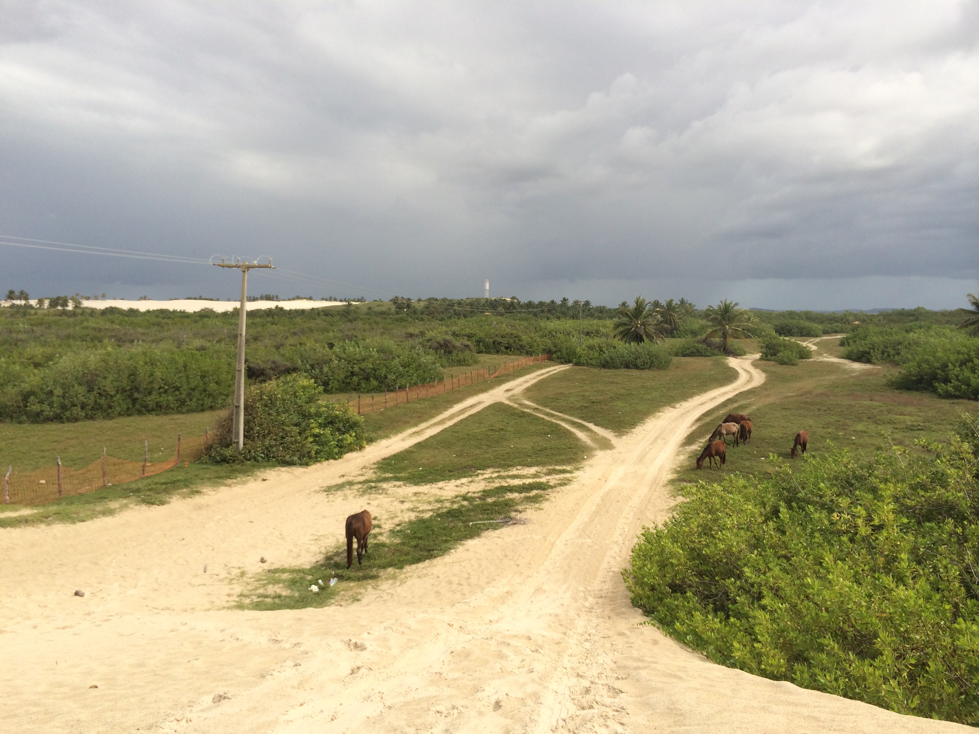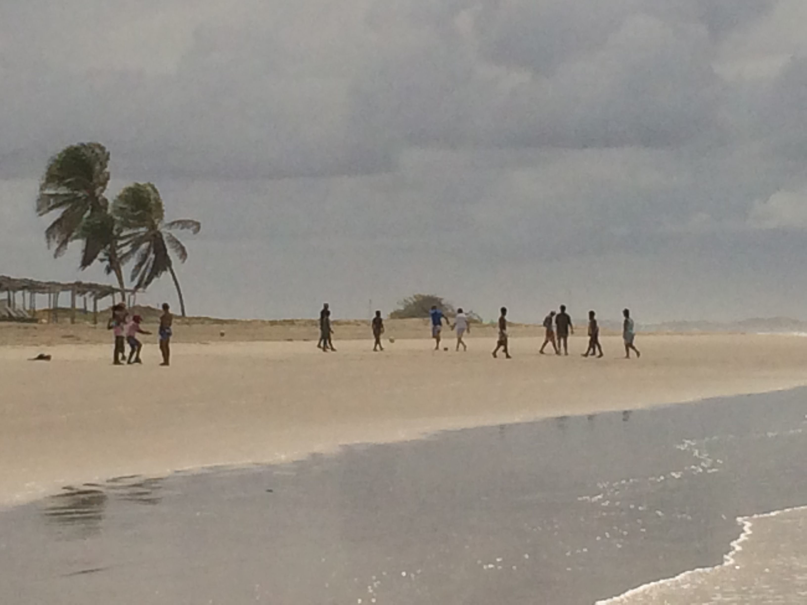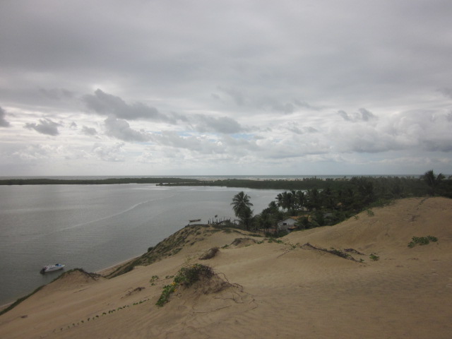 While the tide was still low, we took advantage of the opportunity to row kayaks across the river with the intent to go through a thin canal through a mangrove forest on the other side of the bank. Heading out in the single kayaks the hotel provided, the river went from still to choppy as we rowed further from shore until all of a sudden…the sky broke open and it started to pour! There was a narrow sand bank visible only during low tide that also housed a bungalow on stilts, so we decided to row the short distance over until we realized that 1) the shelter was actually not situated on the sand bank itself, and 2) the shelter lacked steps so we also had no way of reaching it from the water. Feeling like castaways stuck on the sand bank, we braved the storm (all while getting drenched) until it passed, at which point we were too traumatized to continue further into the mangroves and instead rowed back to our shore to just explore some more. We walked back beyond the lighthouse to catch some incredible 360 degree views of the area where the river would feed into the ocean, the neighboring village, more sand dunes, and even some dolphins jumping in the river. After exhausting the area by the river bank, we took a shortcut through the village past a few locals’ homes, and up a sand dune that opened right out onto the ocean. Here, unlike Porto de Galinhas, was a completely secluded stretch of beach save for a few local kids playing soccer. While the beach itself wasn’t as stunning as PdG, it was unique in that we had a long stretch of completely unspoiled beach that was all ours.