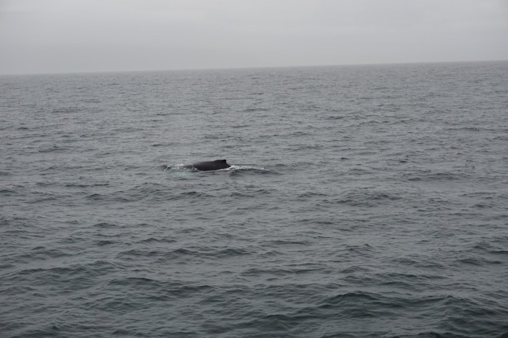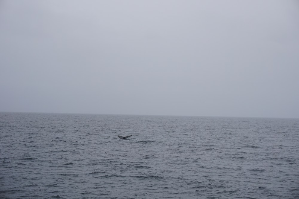 After spending the morning relaxing at the Blue Lagoon, we then drove into Reykjavik to the Old Harbour, where we had reservations for a whale watching tour. There are SO many options for whale watching tours, but we opted for a traditional tour instead of the RIB boat that rides waves (not advised for pregnant people) and went with the company Elding, since they had the best reviews and lots of scheduling options. We all slipped into these waterproof overalls that looked pretty ridiculous and were sooo heavy, but they kept us pretty dry and warm as the rain was still coming down and it was freezing out on the open seas! Guests had the option to hang out in the heated lounge inside but it was much easier to see the whales on the upper deck, naturally. So we braced ourselves, with the occasional indoor break. Our guide was probably more excited than any of the rest of us as she pointed out several humpback whales, a harbor porpoise, a few minke whales, and several puffins (hard to see from afar), during our 3 hour tour.
